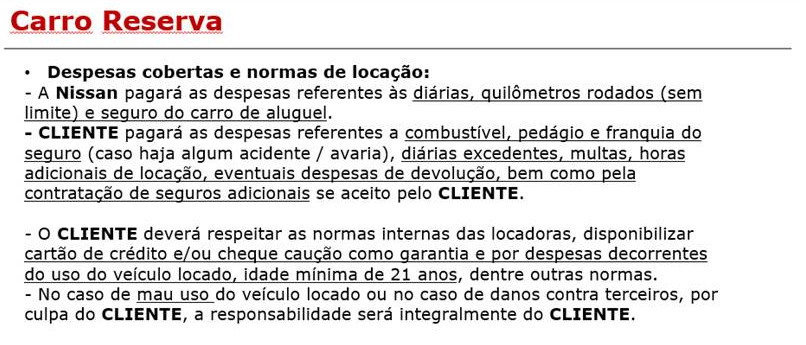 Regras para liberação do VEICULO RESERVA